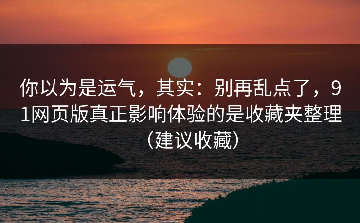 你以为是运气,其实:别再乱点了,91网页版真正影响体验的是收藏夹整理(建议收藏)